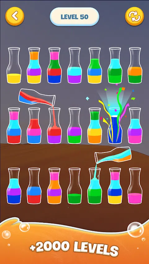 觉得无聊?您在寻找大脑训练游戏吗? ? 水分类拼图:颜色游戏是一款有趣且令人上瘾的颜色分类益智游戏!您的目标是对试管中的有色水进行分类,直到所有颜色都在同一个瓶子中 ? ?水分类益智游戏很简单,但非常容易上瘾且具有挑战性。解决数千个难度不断增加的关卡。在倒水声中放松身心,对彩色水进行分类,让您沉浸在充满活力的色彩世界中!让颜色流动,让你的大脑兴奋地燃烧!? 这是最好的免费水分类益智游戏,可以训练您的大脑,消磨空闲时间并放松身心!? ?怎么玩? ?您的任务很简单:将有色水分类到各自的瓶子中。 ?点击任何瓶子将水倒入另一个瓶子中,但请记住,您只能倒入相同颜色的水,并且瓶子上有足够的空间 ? 每个瓶子只能装一定量的水。如果满了,就不能再倒了。 ? 如果卡住了 - 但别担心,您可以随时重新启动关卡。 ?没有时间,没有限制。放轻松,放松! ?特点? ?只需点击并播放,一根手指控制。 ? 具有惊人主题的多个独特关卡。 ?沉浸在各种令人惊叹的游戏背景中,包括海浪、极光、繁星满天的夜空和宁静的日落 ?没有时间限制和惩罚。您可以随时随地享受水排序拼图:颜色游戏 ? 挑战并测试你有多聪明?立即下载《水分类拼图:颜色游戏》简单但令人上瘾的益智游戏。锻炼大脑,缓解压力。试一试