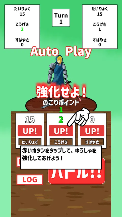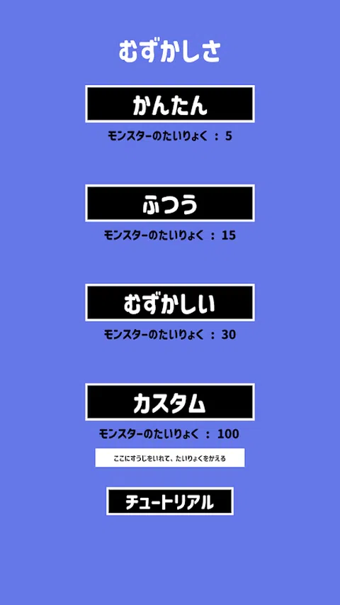 “Genkidama!基于 SDG 的治疗游戏项目”为患有发育障碍(自闭症、阿斯伯格综合症、注意力缺陷/多动障碍(ADHD)、学习障碍和抽动障碍)的儿童开发治疗和教育游戏应用程序。 这是一款专为残疾儿童设计的简单游戏应用程序。 ◆《第六感对战》规则超简单◆ 角色扮演(RPG)游戏,每回合分配玩家状态(能力值)并与对手(CPU)战斗。 默认情况下,玩家和对手分别分配以下统计数据:[15]、[1] 和 [0]。 游戏开始时,玩家为每回合分配[强度]、[Kougeki]和[速度]值,并 一旦分配完成,你就可以攻击你的对手了。 如果你被排序(强化)并且你的[敏捷]和[速度]值高于对手,你可以攻击或躲避。 当玩家攻击对手,将对手的【体力】减为零时,游戏就被清除,当玩家的【体力】为零时,游戏结束。 您可以从 4 种类型中选择游戏的难度级别:“简单”、“普通”、“困难”和“自定义”。 选择适合玩家的难度,分配好状态,以通关为目标