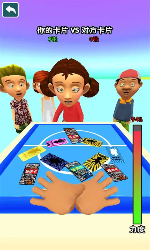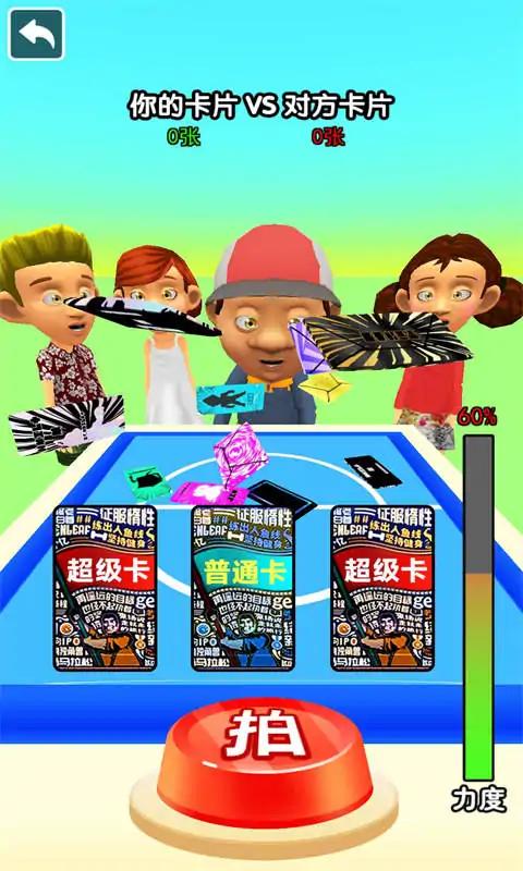 《卡片大对决》是一款休闲益智小游戏,玩家将与各个同学进行拍卡片对决,掌控力度成功将卡片拍翻面则可以获得该卡片,快开始你的卡片收集之旅吧。