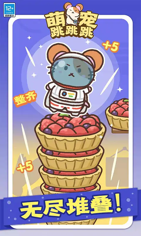 《萌宠跳跳跳》是一款以可爱的小仓鼠为主角,结合平衡、反应与收集元素的手机游戏。你的主要任务是控制小仓鼠跳跃,抓准时机层层叠加从侧边送来的奶酪,并收集尽可能多的奶酪。通过收集奶酪,你可以解锁多样化的游戏内容,包括新的房间背景、仓鼠皮肤以及新的甜品造型。 不要犹豫,奶酪移动的速度将会逐渐加快,而且在不断高难度的挑战中,会出现形状各异、速度不一的不同奶酪。这就要求你除了游戏初期所需的精准点击,更需在后期展现出对于平衡的终极掌控!收集的奶酪可以解锁各类物品——你可以为小仓鼠装扮上新颖独特的皮肤,比如超人服、海盗装或是各类可爱动物服装;你还可以解锁诸如热气球、海底世界等全新的房间主题。快来和小仓鼠一起跳起来收集奶酪吧! 游戏玩点: 1.趣味跳跃挑战:玩家需操作萌宠仓鼠,踩准奶酪的时机来完成高度不断累积的跳跃,使得这个过程既快节奏又具挑战性。 2.收集与解锁:随着奶酪的不断收集,玩家可以解锁多样化的场景、仓鼠皮肤和甜品,让游戏丰富多变,极具收集乐趣。 3.多样化玩法:除了基础的无尽模式,玩家还可以通过不同的关卡来测试自己的反应速度与跳跃技巧。 4.可爱的视觉和音效:游戏拥有可爱的动画风格,每只仓鼠皮肤和收集的甜品都设计精致。