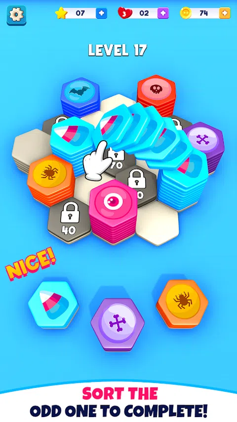 Hexa Sort Master 是一款激动人心的益智游戏,挑战您在 Hexa Color Sort:Sorting Games 的迷人世界中对多彩的图块拼图进行排序。 潜入 Merge Hexa Sort Master 的世界,体验各种脑力挑战,涉及图块分类拼图。无论您是新手还是匹配大师,Merge Hexa Puzzle 3D 都提供多种难度级别,适合每个玩家。通过 Hexa Sort Games 独特的六边形图块排序拼图,体验传统方块拼图的迷人转折。通过游戏直观的控件导航并精确合并六边形,成为大脑测试排序大师。 让自己沉浸在 Merge Hexa Sort Master Brain 测试的迷人世界中,该游戏具有充满活力的图形和迷人的动画。 享受宁静的氛围,同时通过 Hexa Sort Games 舒缓的配乐和氛围锻炼您的大脑。困在谜题脑力测试中?利用游戏的提示和技巧来提高您的排序技能,并征服 3D 排序匹配拼图中的合并六边形挑战。 随着 3D 排序匹配谜题的进展,解锁成就和奖励,展示您作为六边排序大师的实力。离线或在线玩 3D 排序匹配益智游戏,按照自己的节奏,没有时间限制,使 Merge Hexa Sort Games 可随时随地访问 3D Sort 匹配益智游戏。与朋友和家人分享您的胜利,并挑战他们在这个迷人的方块拼图冒险 3D 排序匹配拼图中超越您的高分。 如何玩六角颜色分类:分类游戏 目标 在 Hexa Sort Master 中,您的任务是排列六边形图块以匹配给定的图案。 分类挑战 通过四处移动图块并有策略地合并六边形,潜入 Sort Master 的世界。选择一个图块并将其位置与另一个图块交换以解决难题。 挑战级别 Hexa Sort Master 提供从简单到困难的级别。随着您的进步,谜题变得更加复杂,测试您作为匹配大师的技能。 提示和技巧 卡在拼图上?不要害怕!六边形排序大师提供提示和技巧来指导您完成排序过程。明智地使用它们,成为 Merge Hexa 专家。 满意保证 在 Hexa Sort Master 中体验掌握每个级别的终极满足感。完成拼图,提高您的技能,并成为最终的方块拼图冠军