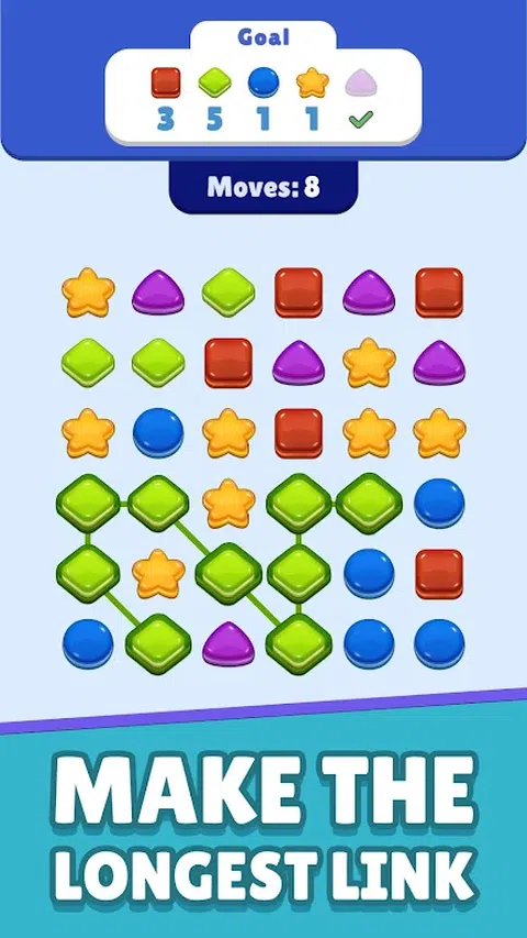 匹配相同颜色的糖果以消除它们!创建广泛的链条,然后拆除它们以引发狂热! 可管理的控件。只需点击一个糖果,然后将手指滑过相邻的相同颜色的糖果!注意你的动作。你必须在用尽机会之前达到目标