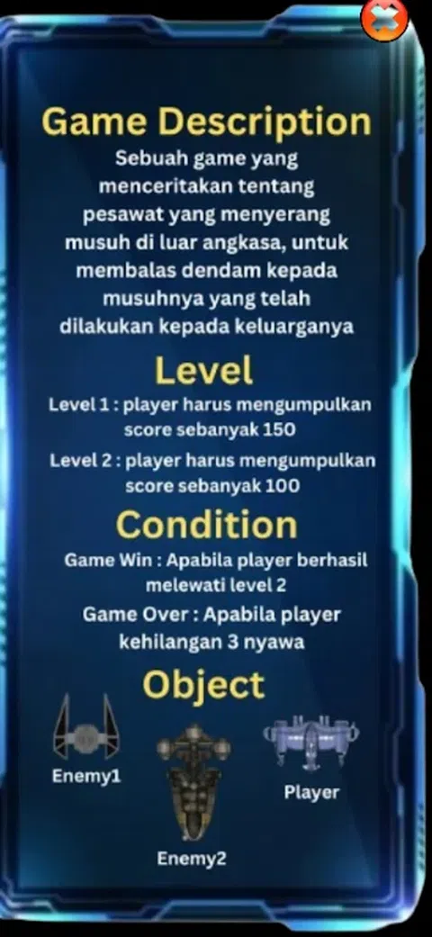 简介 天空赢家是一款射击游戏,其目标是杀死敌方船只。玩家的船必须向左或向右移动。上下移动,避免敌方船只过来杀死玩家的船只。 怎么玩 你有 5 个按钮,2 个左按钮和右按钮。2 个向上和向下按钮。1 发射激光的按钮。杀死所有敌船。 关于创作者 这个游戏是由理查德创建的。Ratih 女士的主管。由时门学院制作