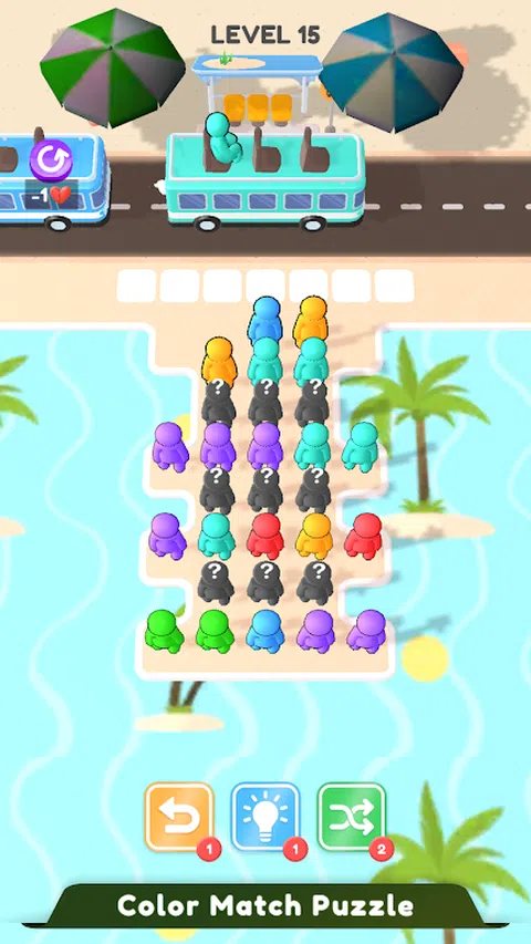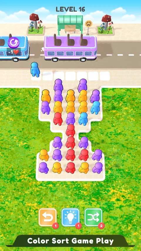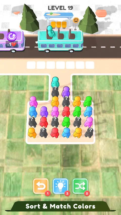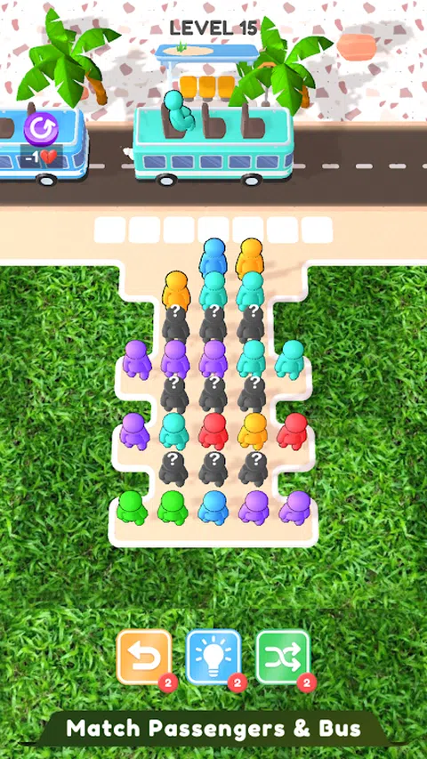 多彩而令人兴奋的匹配益智游戏,您可以在其中匹配乘客和半身像座椅颜色,在这款公交车乘客座椅堵塞游戏中不断匹配颜色并将座椅收起,