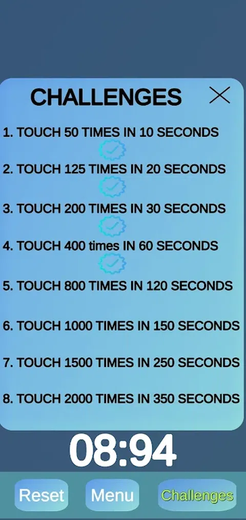 点击手机屏幕上的任意位置,计数器会增加。完成挑战并享受游戏