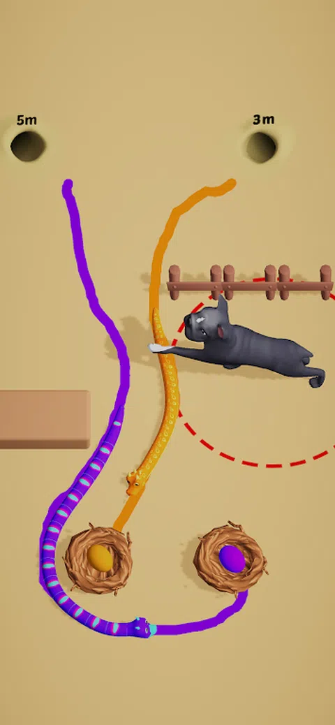 连接线以移动蛇是一款结合了蛇和线条绘制机制的益智游戏。你扮演一个蛇大师,他可以通过在屏幕上画线来控制蛇的运动。您需要将蛇引导到用星星标记的目的地。但是,您还需要避开可能阻挡您的路径或伤害您的蛇的障碍物,例如墙壁、尖刺和其他蛇。游戏拥有 100 多个不同难度和挑战的关卡。随着游戏的进行,您还可以为您的蛇解锁新的皮肤和主题。连线移动蛇是一款考验你的逻辑、创造力和反应能力的游戏