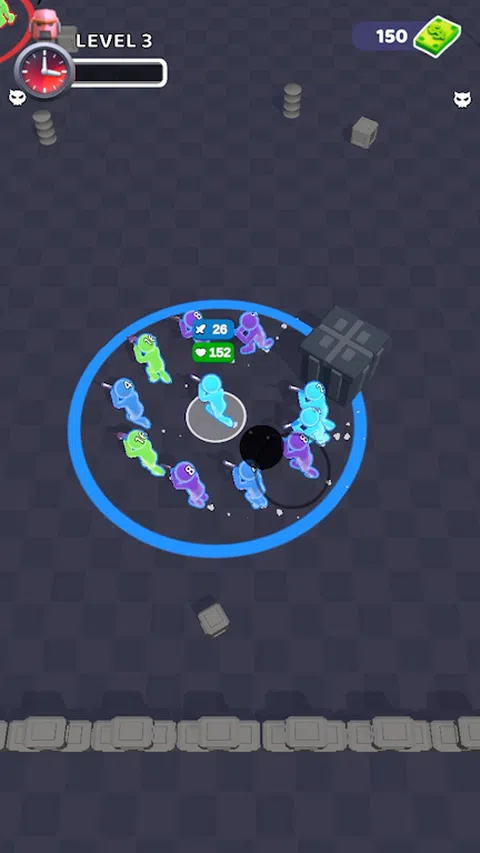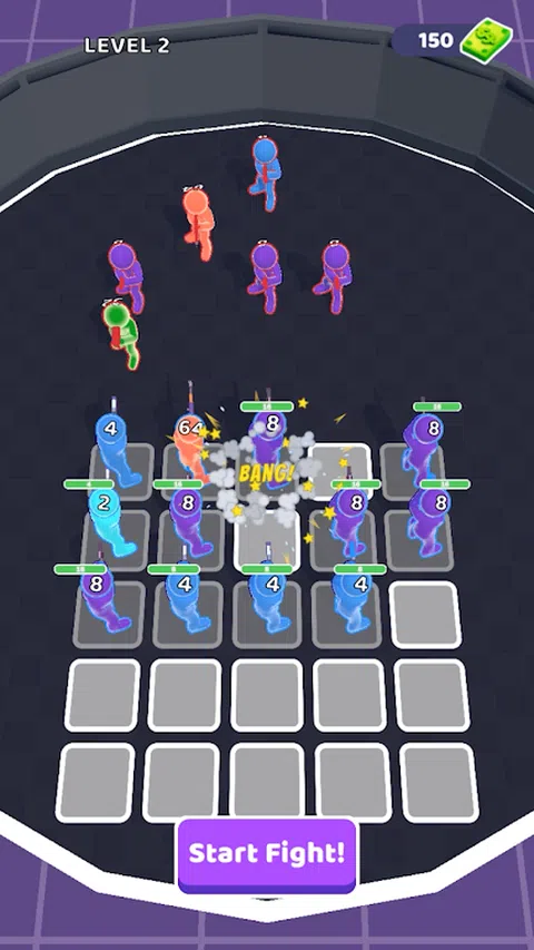 滑动屏幕,寻找战士,让他们加入我们的战斗小队。当我们小队变强大后,寻找敌方战队,打败他们