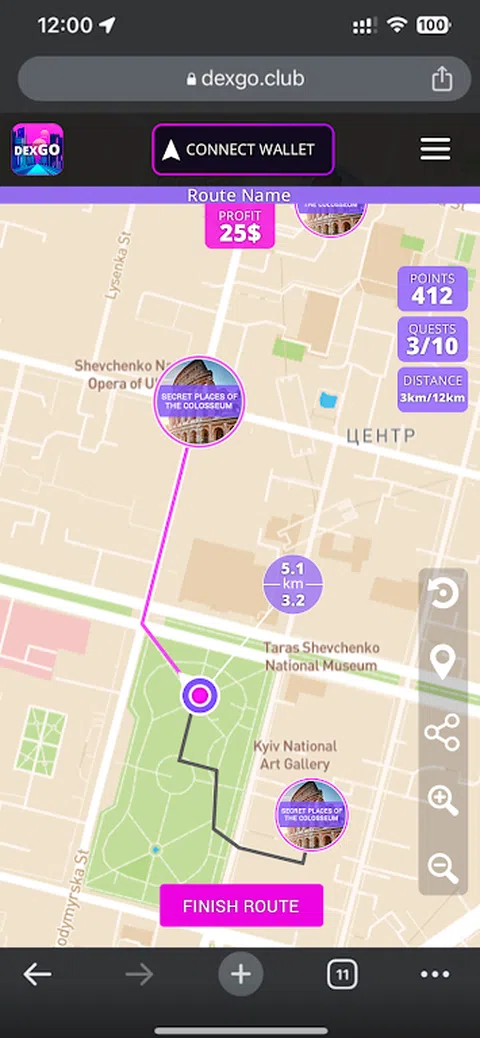通过走真实路线赚钱。DexGO 是一款为健康的生活方式成长、旅行和赚钱而创建的游戏。 准备好冒险了吗?下载应用程序,购买运动鞋,在自己城市的路线上旅行,以此赚钱。 我们创建了穿越主要城市的特殊路线,让您的步行更加有趣。在现实世界和虚拟世界之间踏上旅程。具有增强现实功能的游戏、任务和城市之旅正等着您