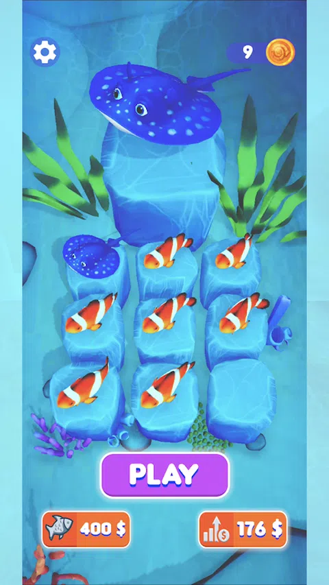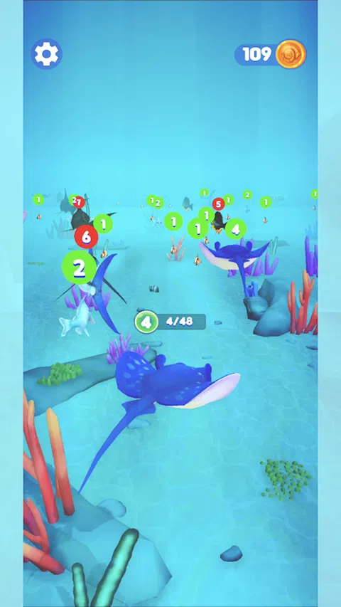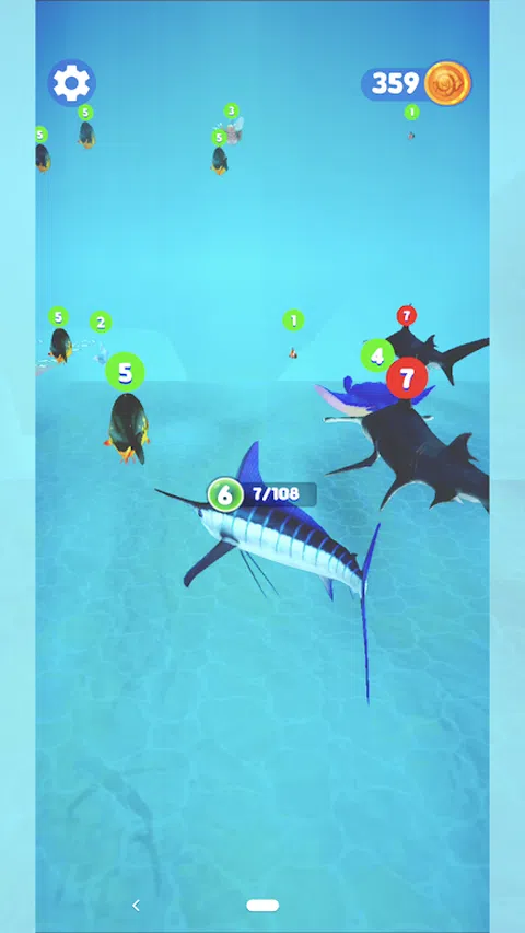 一开始,你是一只小丑鱼,探索海底世界,通过合并同类或者比自己等级低的小鱼进化自己,冲向终点。等级越高,获得的金币越多。快来解锁各种小鱼