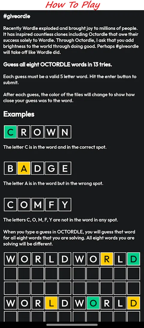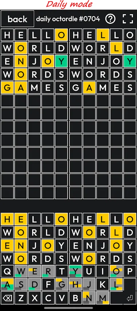 欢迎来到 Octordle 游戏,这是您在手机上获得刺激和身临其境的游戏体验的一站式目的地!潜入 Octordle 迷人的世界,在那里创造力与策略相结合,并在这个独特而令人上瘾的益智冒险中挑战您的智力。 ?游戏特色? ? Octordle Puzzles:释放您内心的侦探,踏上发现之旅。解决错综复杂的谜题,考验你的观察能力,让你沉浸数小时。 ? 多样化的环境:随着游戏的进行,探索各种令人惊叹且充满活力的景观。每个级别都提供一系列新的挑战和惊喜,确保每个时刻都是新鲜和令人兴奋的。 ? 创新的游戏玩法:Octordle 结合了益智和策略游戏的最佳元素,提供既具有挑战性又有益的游戏体验。跳出固有思维模式,制定行动策略以征服每个级别。 ? 每日挑战:通过每日挑战保持兴奋,测试您的 Octordle 技能。每天通过新的令人兴奋的谜题保持领先地位。 ? 社交整合:与朋友联系,分享您的进步。挑战你的朋友,击败你的高分,成为终极的 Octordle 冠军。 ? 优化:Octordle 旨在为您的手机提供无缝且优化的游戏体验。无论您是在 iPhone 还是 iPad 上玩游戏,都可以享受流畅和简单的游戏体验。 立即下载 Octordle,开始一场与众不同的解谜冒险