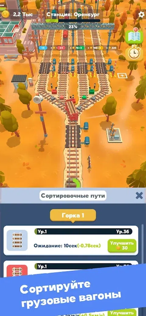 《编组站》是一款令人兴奋的放置点击游戏,您作为编组站服务员,将对货车的流动进行排序。您的任务是高效、快速地进行分拣,以便将货物准确地运送到目的地。您还必须访问不同的城市,在每个城市中您将管理并开发编组站! 游戏特色: 有趣的分类:按下特殊的控制杆对车厢进行分类,并通过控制火车的流量来展示你的协调能力。 雇用操作员:通过雇用操作员来扩大您的团队,他们将帮助您有效地管理汽车流量。 发展车站:改进你的编组站,提升设备水平并建造新的编组轨道以优化工作。 旅行:参观不同的编组站并从头开始建造它们! 加入编组站,沉浸在激动人心的铁路物流世界中。您准备好接受挑战并成为最好的货车分拣员了吗? 马上去查