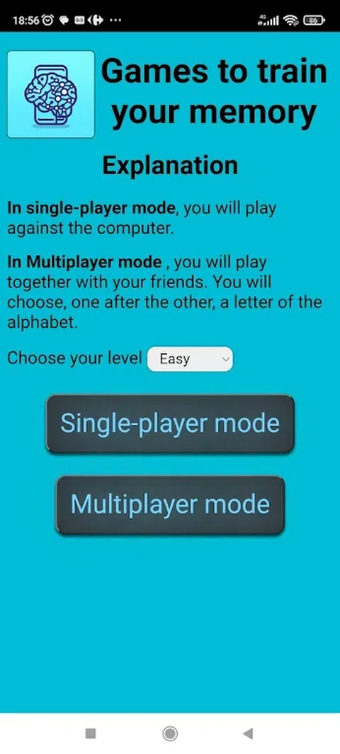 如何玩 在单人游戏模式下,您将与计算机对战。您将一个接一个地选择字母表中的一个字母。目标不是选择已经说过的字母。你能找到选项的顺序吗?关卡将在整个游戏中不断发展 :) 惊喜等待着您. 在多人游戏模式下,你们将一起玩。您将一个接一个地选择字母表中的一个字母。目标不是选择已经说过的字母。你能找到选项的顺序吗?关卡将在整个游戏中不断发展 :) 惊喜等待着您. 为什么要玩记忆闪存 维持记忆力是保持和提高认知能力的基本活动。事实上,记忆是一种动态功能,通过练习和学习得到加强。通过定期刺激一个人的记忆,一个人可以提高一个人的注意力、注意力、信息处理速度和记忆新数据的能力。此外,记忆力的维持有助于对抗与衰老或某些疾病相关的认知能力下降。事实上,根据哥伦布俄亥俄州立大学韦克斯纳医学中心认知神经病学部门主任道格拉斯·沙雷博士的说法,“认知刺激是保持大脑健康并可能抵御阿尔茨海默病症状的方法之一”。哈佛医学院放射学副教授、马萨诸塞州总医院助理神经科学家范韦登博士也指出,“记忆是一个动态过程,涉及神经连接的形成和重组”,“学习新事物可以增强大脑的可塑性和弹性”。因此,维持记忆对大脑和幸福感有益