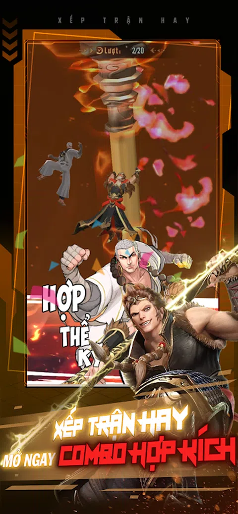 Hello Wukong - 设置智能战斗,登顶救老师 以《西游记》为灵感打造的竖屏策略小队战斗游戏。 该游戏拥有熟悉的漫画画面和引人入胜的任务系统,但该游戏的美妙之处在于对郑汉基情节的深刻描绘。 游戏最特别的功能 1.赠送100个扭蛋,20个立即领取 将军相机 丰富的新手礼包,正品好礼天天都有。登录7天立即获得橙色冠军,登录14天玩家将获得橙色装备一套。在玩游戏的短短几分钟内,您将可以自由地旋转高级将军,确保您的战斗小队中有您最喜欢的角色。 2.多样英雄灵魂,创意玩法 超过190个不同的角色,分为3个氏族:Thien、Dark、Sinh,6个角色各有优缺点。角色之间存在关系和共鸣,只需要拥有这本书就可以激活隐藏属性,提升战术元素,创造灵活的玩法。 3.布置好战斗,立即开连击 剧情中具有特殊关系的武将,将拥有极其令人印象深刻的合基技能,极大地影响阵型和战术。凭借出色的图形和酷炫的效果,玩家将体验到像看电影一样的连击功能。 4.虚化主形,化神形 将您的主要英雄的外观更改为您想要的角色,有助于增加组合攻击技能时的战术和惊喜。该功能可以帮助玩家拥有完美的阵容或战术上的突破。 5.占领Linh Mach矿山,立即抢劫Linh Thach 独特的PvP活动,为灵赛道而战、争夺利益是玩家竞争和交换队伍的首要因素之一。此外,还有其他同样独特的PvP活动:部落Boss、Tam Ton Chi Bi、King Chi Chien、领地之战. 下载游戏,按照你的风格玩游戏,你好悟空