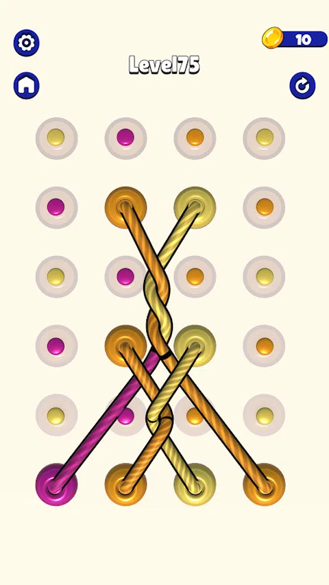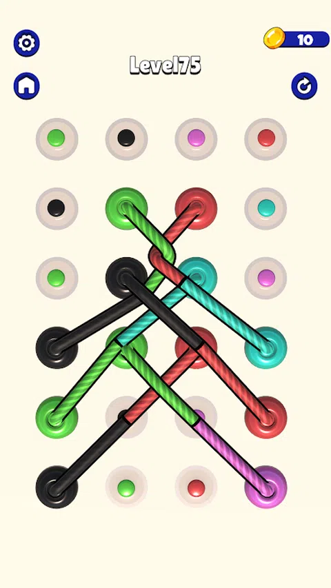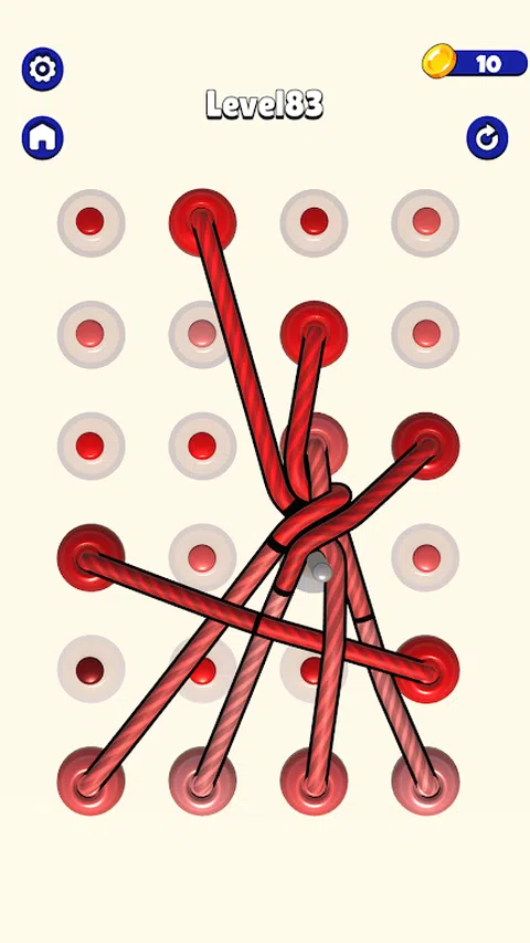 在混合绳索所在的区域,应根据绳索的颜色将绳索分开。 具有不同难度级别、具有挑战性的障碍和颜色的绳索游戏