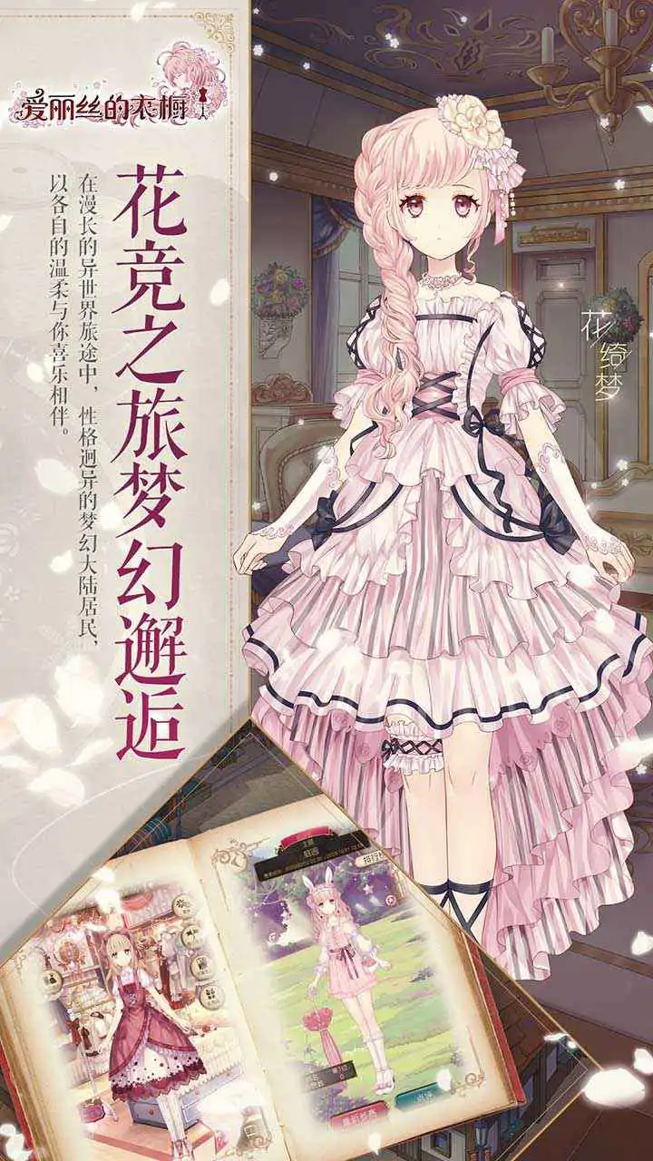 种村有菜原案,爱丽丝换装物语! 《爱丽丝的衣橱》—装扮可爱的爱丽丝花灵,探索【梦幻大陆】的女性向装扮游戏。 在这片名为梦幻大陆的土地上,有一棵掌管生命的起源之树,持续守护着梦幻大陆与大陆上的人们。从这棵树上,诞生了不可思议的爱丽丝种子。当这些种子们遇到合适的主人时,爱丽丝花灵就会从中苏醒。诞生于起源之树的爱丽丝花灵与“起源之树”之间紧密相连,人们能够通过爱丽丝花灵向起源之树传递情感。 为了回馈“起源之树”的恩惠,梦幻大陆上抚养、照顾爱丽丝花灵的人越来越多。人们逐渐发现,装扮爱丽丝花灵,并与他人比拼装扮,可以进爱丽丝花灵体内的玛娜循环,对于促进爱丽丝花灵的健康大有帮助。 久而久之,“花竞”逐渐走进了人们的日常生活中,成为了必不可少的一项活动。为了维护花竞比赛的公平,同时保护爱丽丝花灵和起源之树,设立了树护官这一职位。 在这片大陆的中心,有一个叫做心灵之地的国家,他们的女王喜爱美丽的爱丽丝花灵,因而举办了盛大的“花竞大会”这吸引了出于各式各样目的的人们前来参赛。 极致洛丽塔风格时装,打造装扮的无限可能。前往梦幻大陆,带着爱丽丝花灵,开始一段奇幻旅程吧。