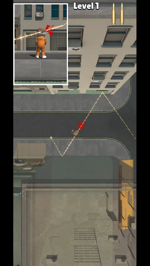 你扮演狙击手,你的目标是用子弹击中目标。 发射的子弹从墙壁上反射并改变方向。预测弹跳位置并射击目标