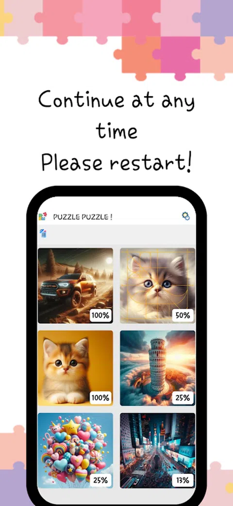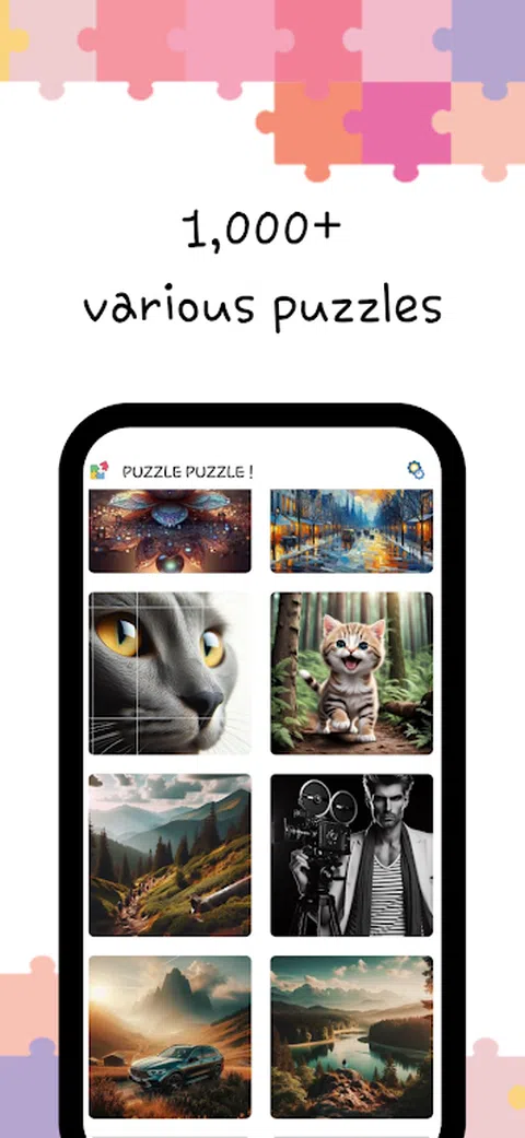 我们邀请您进入最好的益智游戏世界!“拼图拼图!”是一款简单易上瘾的益智游戏,拥有 1000 多张免费高清图片。您可以根据需要解决任意数量的难题并享受它们,而不必担心像其他益智游戏那样丢失分数、技巧或碎片。 使用“Puzzle Puzzle”提高您的记忆力和注意力,享受没有空间限制的游戏,就像解决真正的拼图一样。每天沉浸在推荐的谜题中!并解决它! 这个益智游戏充满了美丽的免费图像,根据拼图碎片的数量,您可以享受从易到难的各种难度级别。 如果你真的喜欢益智游戏,你会喜欢这个应用程序! 在手机上玩的益智游戏和真正的益智游戏一样令人兴奋!另外,“拼图拼图”可以在任何地方玩,因此您不必担心丢失碎片。有许多不同类型的拼图,它们具有与真实拼图无异的吸引力。 玩拼图游戏,帮助您减压和治愈,从日常生活中休息一下。 享受丰富多彩的免费益智游戏世界: 各种免费图片“拼图拼图!”提供大量免费图片。从自然风光到动物、名画、汽车、猫、丰富的色彩、时尚、花卉,您可以享受关于自己喜欢的主题的拼图,包括历史建筑等。通过我们多样化的图像集合丰富您的游戏体验! 简单的操作方法 当您玩“Puzzle Puzzle!”时我们提供简单直观的操作方法,以避免任何困难。只需轻触几下即可匹配拼图块,它的设计使您可以毫无困难地享受游戏。从初学者到专家,任何人都可以轻松玩,最少 4 件到 100 件! 有用的提示 如果您遇到困难,请使用提示找到下一块拼图。您不必觉得困难。如果遇到困难,休息一下是享受它的一种方式。 完全免费 为您带来更多好消息!“拼图拼图!”是完全免费的。没有隐藏费用或广告,您可以随时享受游戏。在免费玩的同时解决具有惊人图像的拼图! 您可以将拼图碎片的数量从最少 4 个调整到最多 400 个。每天通过匹配拼图游戏的碎片来获得乐趣和治愈