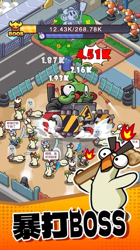 愤怒的小鸡不可阻挡! 从一片废墟之中接手并壮大你的小鸡加工厂吧!管理它的每一方面,扩大业务,吸引顾客,武装军队。 体验在加工厂后院疯狂生产小鸡战士的乐趣,迎接穿越时空而来的强大BOSS挑战。 派遣小鸡战士出征,猎杀史诗级对手,获取海量战利品,源源不断的供给商店最潮商品,使你的品牌声名远播。 装备千奇百怪的武器和头盔!收集独特物品,发现新装备组合,打造独特的战术风格。 用史诗外观定制你的小鸡战士,并将它们整合成一个团结的队伍。 小鸡加工厂是一款易于上手的模拟经营RPG,通过管理你的小鸡战士和加工厂来抵抗敌人,体验无与伦比的乐趣。 立即免费下载,开始打造属于你自己的小鸡加工厂