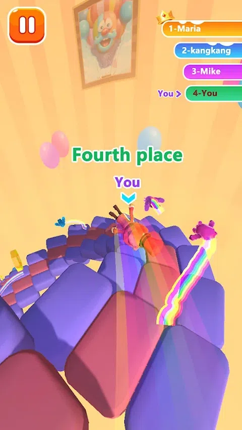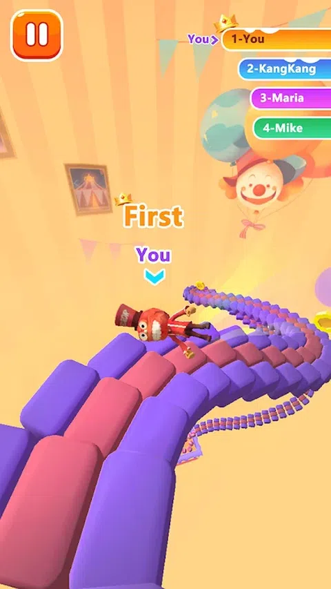 在马戏团中生活着一批小丑,他们最热爱的运动就是在五彩缤纷的台阶上翻滚而下,比拼各自的技艺。每次身体和台阶的碰撞,因为压力而产生的形变,被反作用力推上高空,都让小丑们兴奋不已。胜者的奖赏更是无数的糖果和巨大的蛋糕,这让小丑们前仆后继的参与其中。而现在,由你控制的小丑已经准备就绪