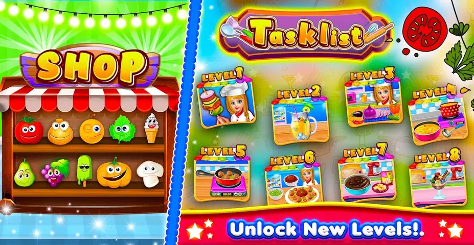 穿上你的围裙,进入你的厨房,在你自己的厨房大师烹饪游戏中开始烹饪来自世界各地的不同美食和食谱。 玩并解锁不同大陆的大量食谱,包括印度美食、中国米饭和意大利披萨,并准备好在厨房大师游戏中测试您的烹饪技巧。 继续玩即可解锁更多食谱并学习独特的食物制作方法。 成为一名餐厅大师,带上自己的厨房用具并更新你的厨房,成为城市里的美食大师。 开始玩令人上瘾的游戏并制作美味佳肴。 只需点击即可在这款 2D 模拟厨房烹饪游戏中进行烹饪,并享受令人兴奋的声音和动画,享受乐趣。 烧烤汉堡并在披萨盘中制作披萨,并享受食物的 ASMR 声音。 获取您的原料、物品和食物来完成您的食谱并免费享受美食游戏。 在你的面包店里等待的顾客开始快速移动并在厨房里制作美味的食物。 不要浪费时间,否则您将开始失去客户,并且不要忘记对您的烹饪物品付出额外的爱以赢得他们的心。 在 2023 年的烹饪游戏中,各种各样的食物等着你烹饪。在烹饪日记餐厅游戏中体验疯狂的烹饪,测试你的技能,不要让你的顾客等待。 一款点击游戏,在厨房里烹饪,需要使用特殊的技术和食谱。 开始成为一名聪明的厨师,并在初级水平上经营自己的生意。 您可以在其他面包店或餐厅工作来学习特殊食谱,但在赚取足够的金币后,您可以使用所需的厨房和酒店用具开始自己的厨师烹饪大师业务。 这款厨房大师烹饪游戏可让您研究烹饪食谱并克服您的烹饪品味,所以您还在等什么? 玩游戏、制作食物并为您的顾客和朋友提供服务。 永远记得快速点击以准时送餐。 一旦您完成了厨房大师游戏的基本级别,您将解锁困难但充满冒险精神的高级级别。 当顾客数量增加时,不要给顾客上错菜,否则你会失去他们的小费。 食物总是受到我们的喜爱并且很棒,显然谁不喜欢吃食物,所以开始玩并为你的朋友提供食物。 这是一款面部节奏游戏,点击即可玩,完成菜肴即可赚取金币并升级您的业务。 将您的食品烹饪业务提升到一个新的水平,开设更多商务酒店分店,购买食品卡车并进行世界旅行。 准备好玩 2023 年的烹饪游戏之一,能够升级您的厨房机械和精美的食物切割和烘焙动画。 准备好制作美味的中国美食,如辣汤、面条、宫保和甜鸡。 学习制作美味的墨西哥食物,如奶酪牛排、牛排、美味的鱼和法式热狗。 厨房大师:烹饪游戏特点: 来自世界不同地区的不同美食 超过 +100 个关卡 一场游戏中的厨房和烹饪活动 享受数百种美食的离线游戏 酷炫的音效和音乐 离线享受精彩的美食食谱