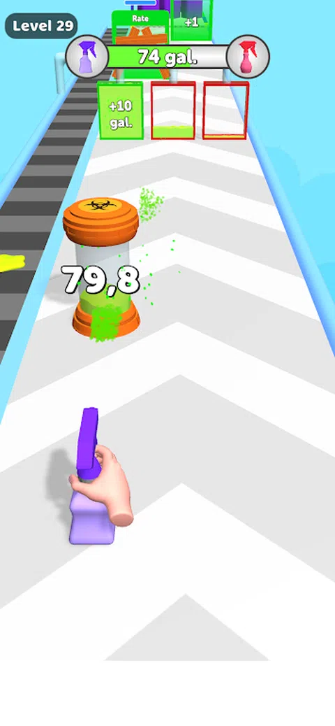 通过泼酸熔化。 赚钱并升级。 获得更坚固的喷雾瓶。 融化更多