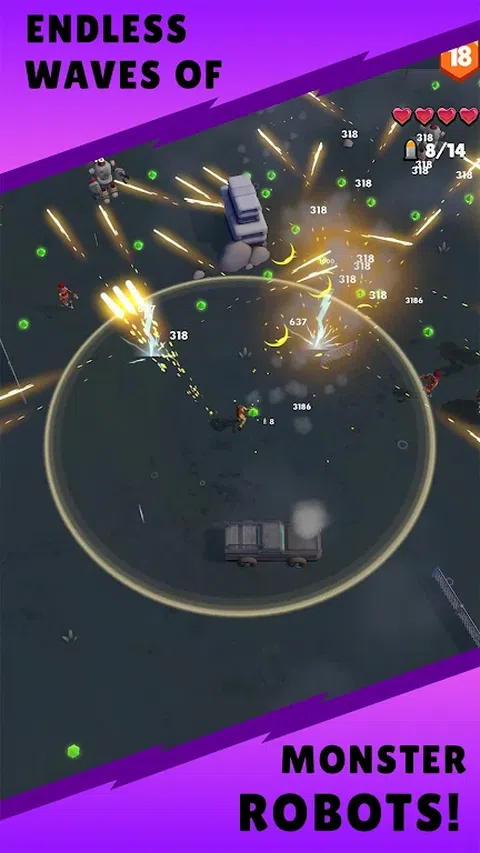 机器人有了意识,它们将摧毁地球上的每个人类!只有你可以拯救人类对抗危险的机器人。 作为士兵,您可以获得专属武器并对抗最可怕的机器人。机器人在每一波浪潮中变得更加聪明和强大。别担心,您拥有无限的增长潜力!请注意,有时它们的数量可能会超过您,并将您逼入绝境,您可以找到生存的方法