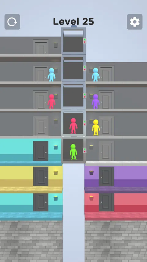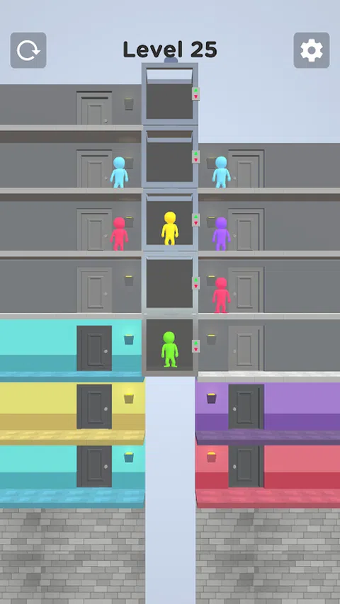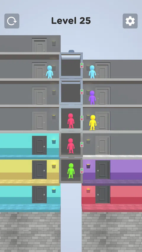 随着电梯负载的增加,它会下降一层。将角色放在正确的地板上并完成关卡