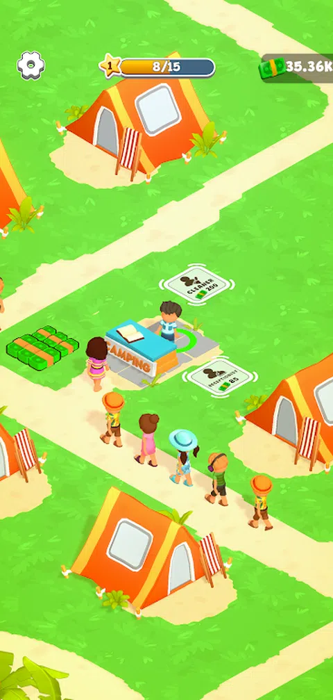 您准备好参加可以享受大自然的露营游戏了吗? 购买一块土地,清理草地,开始建造露营地。当你的露营地 velops,您将成为客户的最爱。解锁新区域供他们享受和 扩大你的领土。享受海滩、美味饮料和户外电影的氛围 剧院