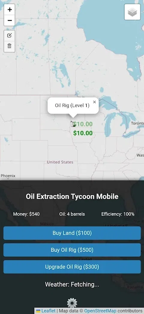 踏上激动人心的旅程,在石油开采大亨移动版中建立自己的石油帝国! 潜入能源生产世界,从平凡开始,扩大影响力,成为全球石油巨头。这款基于浏览器的大亨游戏提供丰富而身临其境的体验,让您沉浸其中数小时。 主要特点: 战略资源管理: 购买土地并开采石油:购买土地并建立石油钻井平台以开采宝贵的资源。明智地管理您的财务以扩大您的业务。 升级您的基础设施:增强您的石油钻机以提高生产率和效率。投资研究以解锁先进技术并最大化您的利润。 交互式地理地图: 2 种工作地图主题:在详细的街道地图和身临其境的卫星地图之间进行选择,以导航和管理您的帝国。请注意,3D 地图主题目前正在开发中,将在未来的更新中修复。 运动流畅度:体验无缝导航和操作,具有卓越的运动流畅度,确保迷人的游戏体验。 引人入胜的游戏机制: 实时天气系统:适应影响石油生产的不断变化的天气条件。围绕雷暴、晴朗的天空等制定您的策略。 动态市场:应对波动的石油价格和市场需求。在正确的时间出售您的石油,以最大限度地提高利润并在竞争中保持领先地位。 针对三星 Galaxy 进行了优化: 120Hz 支持:针对 Samsung Galaxy 设备进行了独家优化,在 120Hz 支持下享受惊人的游戏流畅度。见证流畅的动画和无缝过渡,让您的大亨体验真正身临其境。 未来更新: 持续开发:我们致力于改进石油开采大亨移动版。期待未来的更新,这些更新将修复 3D 地图主题并引入新功能以增强您的游戏体验。 为什么要玩石油开采大亨移动版? 石油开采大亨移动版不仅仅是一款游戏;这是一次挑战您的管理技能和决策能力的战略冒险。无论您是休闲玩家还是忠实的大亨爱好者,您都会在建立和管理石油帝国的过程中找到无尽的乐趣。 立即开始成为石油大亨的旅程