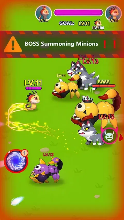 故事发生在黑暗森林之中,在这个无尽黑暗的森林中,每天上演着弱肉强食的故事 一直在重复着,日复一日,年复一年,此处恢复到了往日和平的日子,终于在某一天,有一群神秘的怪物来到了这片森林,打破了平静, 最终在这片森林中引起无尽的厮杀,这期间森林里每个怪物都会为自己的存活而努力着,它们会躲避比自己更强大的怪物 让自己得以存活,吞噬比自己弱小的怪物,从而使自己变得强大。 游戏玩法: 玩家在游戏中通过操控小蛇移动的同时,一方面躲避高等级的怪物, 另一方面攻击低等级的怪物,从而获得低等级怪物的经验以用来升级。 升级到一定等级后玩家可以获得胜利,同时获得相对应的金币奖励。 玩家可以使用奖励的金币来购买小蛇的光环,从而提升小蛇的实力,进一步带来更好的游戏体验