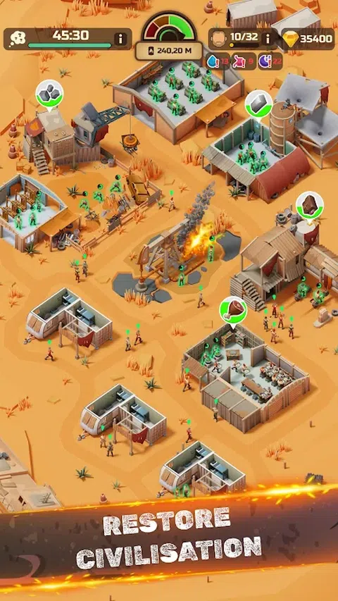 如果您喜欢生存和闲置游戏,请尝试我们的《燃烧之城:疯狂幸存者》游戏。它为大亨模拟器和生存流派带来休闲风味,让您随时随地玩。即使离线也可以享受进度,并扩展您的拾荒者城市,成为荒原上最伟大的军阀! ?*生存模拟*? 作为幸存者的,您将需要管理稀缺资源,例如食物和水。不要让你的人民挨饿,始终让他们开心 - 谁知道一群疯狂的荒地清道夫可以对一个不尊重的做什么?你的人民是游戏中的主要力量—没有他们,你的城市就会衰败,所以要照顾他们。在这个柴油朋克世界中,油与水一样重要。密切注意您的天然气供应,否则一切都会停止! ?*突袭沙漠!*? 随着城市的发展,需要越来越多的资源。组建一支突袭者团队,在广阔而危险的沙漠中寻找资源,但要准备好反击控制这片后世界末日荒地的强盗和掠夺者。 - 建造城市:用石油和天然气为你的疯狂城市提供燃料,并将其驱动到功率!收集资源,升级您的城市并扩展它以获得新的幸存者。 - 生产链:将资源转化为有用的工具,不要丢失任何废料,因为荒原中的一切都会派上用场。优化您的城市,并确保以正确的速度生产每种资源。 - 分配工作:将幸存者分配给不同的任务,例如收集废料、制作食物或组装汽车发动机。跟踪工人的耐力和水分状况,确保他们不会离开您。探索沙漠城市的运作方式,并管理具有挑战性的运营任务。 - 收集英雄:各种各样的人在这些尘土飞扬的荒原上漫游,但是您能将所有那些强盗、战士和敏锐的幸存者带到您身边吗?收集强大的英雄,帮助您的城市发展壮大