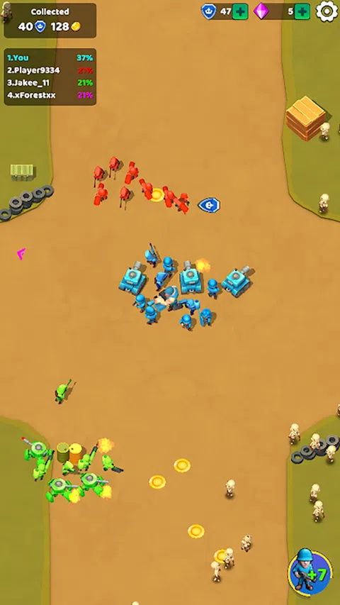 加入幸存者之王的终极生存之战!指挥你的小队,消灭敌人,收集资源,升级你的部队,称霸战场。体验前所未有的大规模 PvP 战斗! - 战略战斗:带领你的小队对抗一波又一波的敌人。使用战术来取胜。 - 大规模 PvP 战斗:参与大规模的玩家对战,证明你的统治力。 - 资源收集:击败敌人以获取资源并增强您的小队。 - 升级和自定义:使用收集的资源改进您的单位。 - 多样化的兵种:招募普通士兵、稀有专家和史诗战争机器。 - 基于波浪的挑战:在不断增加的敌人波浪中生存以获得奖励。 直观的控制:简单的操纵杆控制,可实现流畅的游戏。 游戏玩法: 踏入竞技场,在幸存者之王中证明您的策略技能。成为最终的幸存者