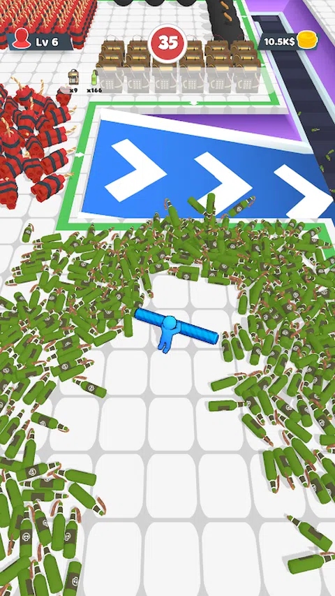 - 前进到关卡末尾,在途中用棍子推倒敌人! - 移动你的角色,让所有弹药落下! - 当心巨大的敌人,轮到他们击倒你了! - 一键式易于学习的控件,具有惊人的视觉效果和令人上瘾的游戏机制! - 收集平台上的所有弹药,在时间用完之前消灭敌人