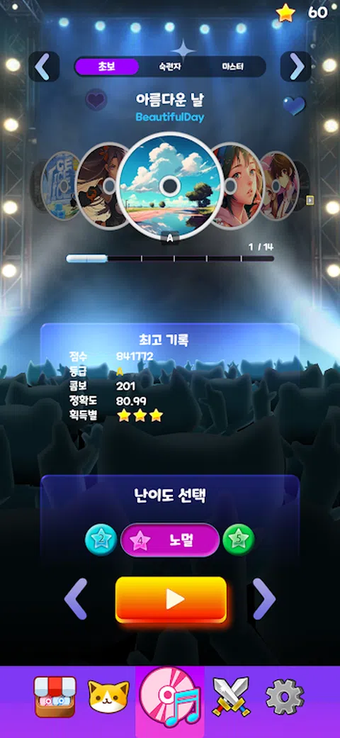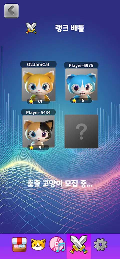 介绍O2JAM - CATS: 用猫科动物的灵巧随节奏起舞! 准备好踏上O2JAM - CATS的非凡音乐之旅!让自己沉浸在迷人的节奏游戏中,让猫咪登上舞台,随着节拍起舞。这款应用程序结合了节奏游戏的刺激和可爱猫科动物难以抗拒的魅力。是时候让节奏引导您,释放您内心的大师风范了! 体验带有猫科动物特色的节奏游戏的快感! 当音符优雅地落在屏幕上时,点击、滑动并掌握节奏。当您的天才猫科舞伴配合您的一举一动编排出令人着迷的舞蹈时,您将惊叹不已。每一次精准的敲击,它们的表演都会变得更加迷人。准备好体验身临其境的感觉吧,这将让您惊叹不已! 与可爱的舞猫演员见面! 在舞池中邂逅魅力四射的可爱猫咪,每只猫咪都会带来独特的风格和个性。从优雅的华尔兹舞者到时髦的霹雳舞者,每种音乐品味都有适合的猫咪伴侣。随着游戏的进行,您还可以解锁新的猫咪,欣赏它们迷人的舞姿。是时候来发掘O2JAM - CATS中的各种才华横溢的演员了! 让自己沉浸在迷人的背景音乐中! 让节奏来控制您,让您随着各种类型的歌曲尽情狂欢。从朗朗上口的流行旋律到震撼人心的电子节拍,《O2JAM - CATS》的背景音乐将让您沉醉其中。每个关卡的设计都与音乐同步,创造出视觉震撼的和谐体验。让旋律带您进入音乐的极乐世界! 邀请好友进行激动人心的4人在线对战! 惊心动魄的4人在线对战,将精彩推向新的高度!邀请您的朋友一起参加激动人心的舞蹈对决,展示您的节奏实力。在实时多人挑战中与您的朋友合作和竞争。或者,挑战来自世界各地的高手,在激动人心的对决中检验您的技能。是时候召集您的团队,一起跳舞,征服全球舞台了! 立即下载O2JAM - CATS,释放您内心的节奏大师! 准备被《O2JAM - CATS》迷住吧!这款游戏结合了节奏游戏的快感和跳舞猫的可爱魅力。这款非凡的冒险游戏现已在App Store上架。今天就加入节奏革命,跟着节拍跳舞,体验《O2JAM - CATS》的魔力