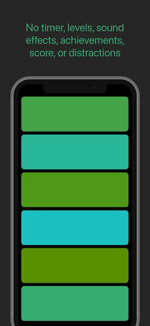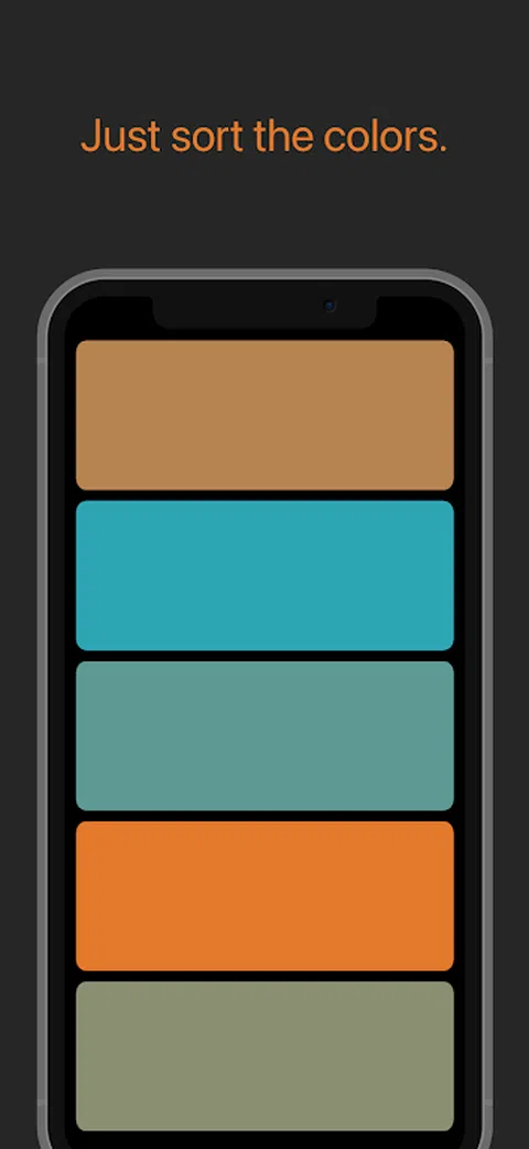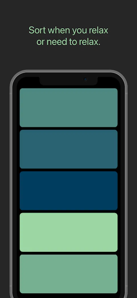 对颜色进行排序。 放松时排序。 当你需要放松时排序。 听音乐时排序。 收听播客时进行排序。 没有计时器,关卡,音效,得分, 成就或分心。 只需对颜色进行排序。 想象一下,将颜色分类作为一种冥想练习,让您的思绪进入宁静的状态。没有计时器、关卡或压力,您可以沉浸在组织颜色的简单但非常令人满意的任务中。没有声音效果让你从平静的状态中惊醒,没有分数可以追逐,也没有成就可以解锁—只有纯粹的分类乐趣