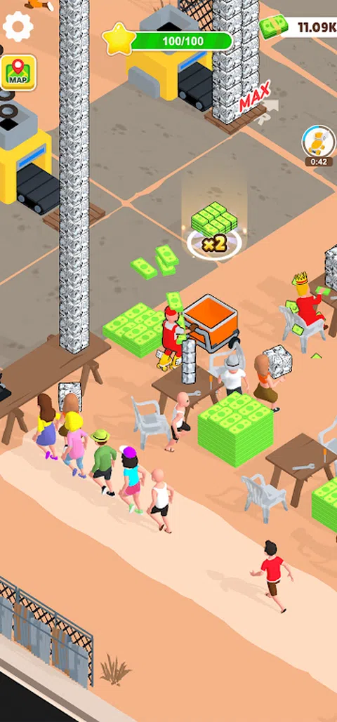与“废品大亨”一起变废为宝! 与“垃圾场大亨”一起潜入回收和创新的世界!在这个令人兴奋的闲置游戏中,您将把毫无价值的垃圾变成有价值的产品,并建立您的商业帝国。 特点: 收集垃圾:搜索区域并收集各种类型的垃圾。等待转化的材料并不缺乏。 将垃圾加工成新产品:将收集的垃圾带到机器中,将其变成新的有价值的产品,例如玩具车和电脑配件。 向客户销售新产品:观看您的客户浏览并购买您的创新产品。需求量很大,所以继续生产! 客户体验:客户将在您商店的桌子上打开并享用他们的新产品。确保在他们离开后清洁桌子,以保持商店整洁。 赚钱:从你的销售中赚取利润,看着你的财富增长! 扩展您的业务:使用您的收入来扩展和升级您的商店。您的商店越大越好,吸引的顾客就越多。 立即加入,成为终极回收大亨