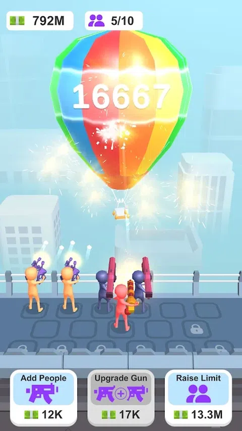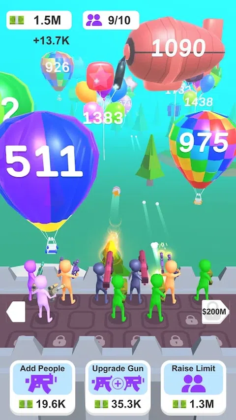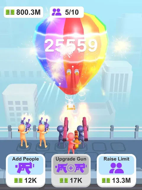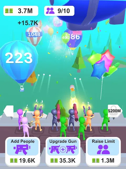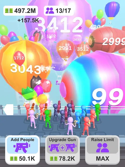 Merge Balloon Blasters 是一款有趣且令人上瘾的闲置游戏,您可以雇用枪手来射击气球。当你爆破气球时,你将赚取硬币,你可以用这些硬币雇用更多的枪手并将他们合并以创建更高级的枪手。每三个相同的炮手可以合并为一个更高级别的炮手,让你更容易爆破更多的气球。 Merge Balloon Blasters 的优点之一就是它非常容易玩。这款游戏非常适合那些想要在享受有趣挑战的同时放松身心的人。 如果您喜欢闲置游戏,Merge Balloon Blasters 将是您的游戏。立即下载,看看你可以爆破多少气球
