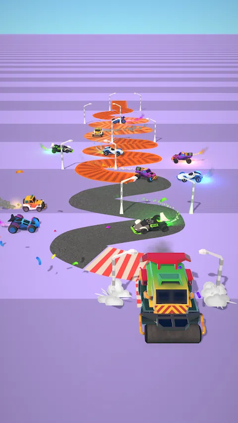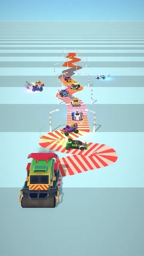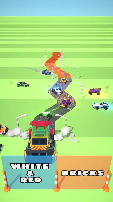 使用筑路机建造道路。 穿过大门,选择要建造的道路类型。 从两侧拿起赛车手
