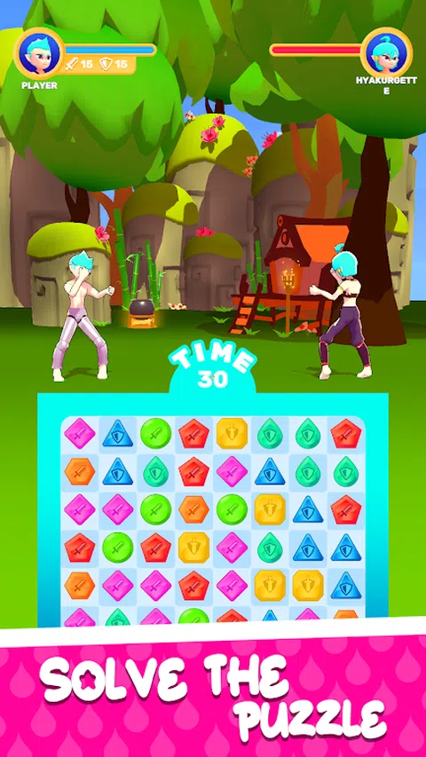 让自己沉浸在《Fighter Puzzle》的刺激世界中,在这里,经典的解谜游戏与激烈的快节奏格斗动作相结合。这款创新游戏将战略思维与刺激的战斗相结合,提供独特的游戏玩法,挑战您的思维和反应能力。 在《Fighter Puzzle》中,玩家从独特的战士名单中进行选择,每个战士都有自己的特殊能力和战斗风格。核心游戏玩法围绕网格上匹配的彩色宝石展开,以积聚能量并向对手发动强大的攻击。 三消机制:对齐三个或更多相同颜色的宝石,将它们从面板上清除,为您的战斗机产生能量。连击越大,积累的能量就越多。 特殊动作和道具:使用收集的能量来激活战斗机的特殊动作和毁灭性的道具。每个角色都有一套独特的技能,可以扭转战局。 组合链:创建组合链来处理巨大的伤害并扰乱对手的棋盘,为每次遭遇增加策略和刺激