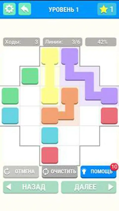 连接点线是一款非常令人上瘾的益智游戏。您可以花很长时间沉浸在游戏中,尝试完成 1000 多个关卡。 游戏的主要目标是连接所有相同颜色的点。 大量不同难度的关卡由两组组成: 一般的: - 新手 - 容易地 - 标准 - 挑战 - 难的 - 难的 - 掌握 额外的: - 块 - 开始 - 块 - 奖金 - 块 - 高级 - 形状 - 开始 - 数字 - 奖金 随着你的进步,你将能够打开某些级别的组。 玩连点线游戏非常简单。 您需要单击其中一个点,然后通过空单元格将其移动到另一个点。此位置将出现一条线并填充单元格