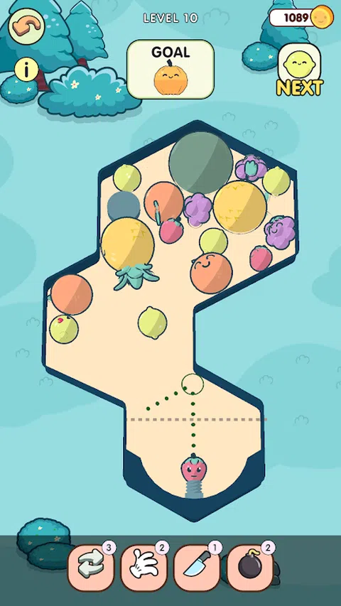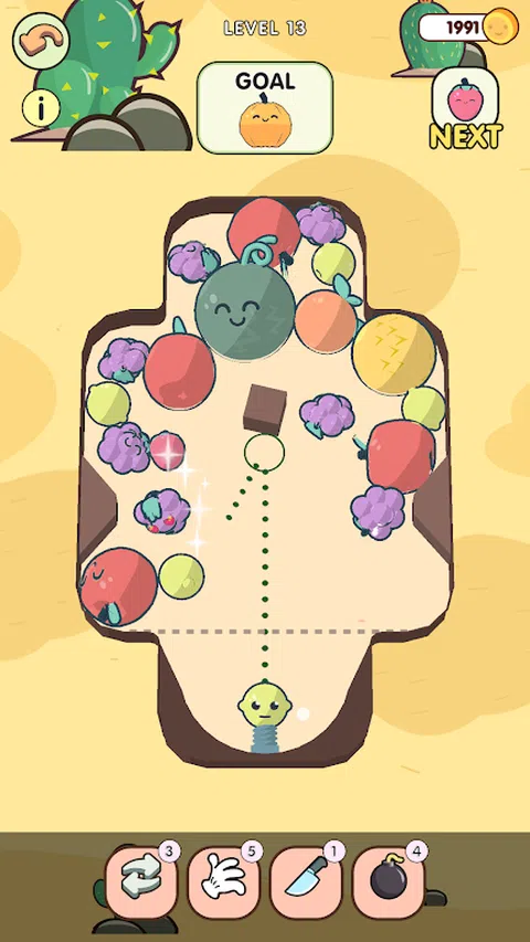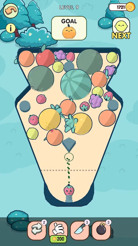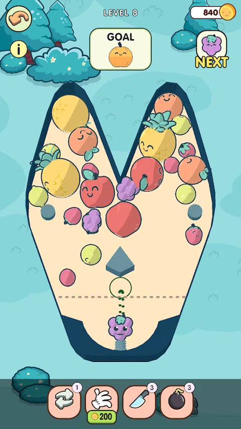 射击水果并合并它们 - 每个新水果都变大!注意角度,明智地利用周围环境