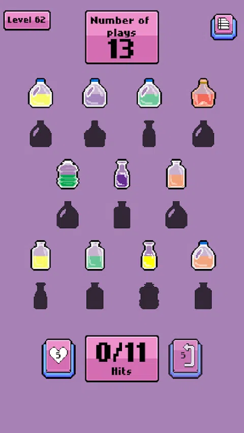 在游戏中,玩家面临的挑战是改变各种瓶子的位置,直到找到正确的组合。 Gade: The Bottle Game 是一款令人兴奋的益智游戏,其中逻辑和策略至关重要