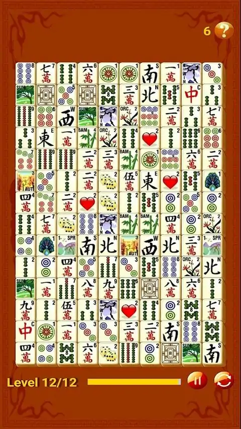 Mahjong Connect 的第一个经典基础版本之一。 经典麻将连接是单层麻将,也称为平面麻将,其中所有骨头都布置在一层中。它们以传统方式清洁 - 成对,但清洁的限制和规则略有变化。由于单层设计,大多数图块在游戏开始时都被阻挡,您只能从边缘或彼此相邻的图块进行配对。 这款麻将连连看的一个显着特点是,在移除麻将牌后,柱子会根据级别进行不同的滑动。在预测接下来的几步棋时,有必要考虑到这一点。经过这样的转变,比赛场上的情况发生了显着变化。 当然,不要忘记时间,还有游戏中不止一个关卡(总共有 12 个关卡)。当您长时间不从桌子上移除单个对子时,第一个提醒就变得很重要。计时器会仔细计算您从总余额中考虑下一步行动的所有时间。底部(计时器)的黄色条纹正在迅速消失,请密切注意。 休息一下,玩一些开发逻辑和想象力的在线游戏,让您放松身心。放松身心