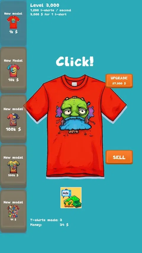 成为终极服装点击者!点击升级独特的 T 恤,出售它们以获取利润,并解锁新的设计。解锁新模型并提高生产速度。你能称霸 T 恤市场吗?立即游戏并找出答案
