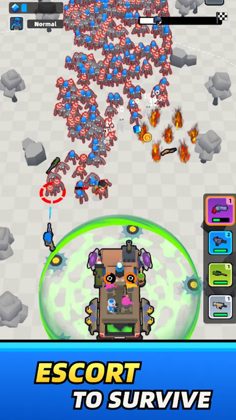 你和你的小队在这个后末世僵尸出没的世界中保护和护送终极车辆。保持生命并守卫车辆,收集你的战利品,合并和升级它们,并消灭所有僵尸