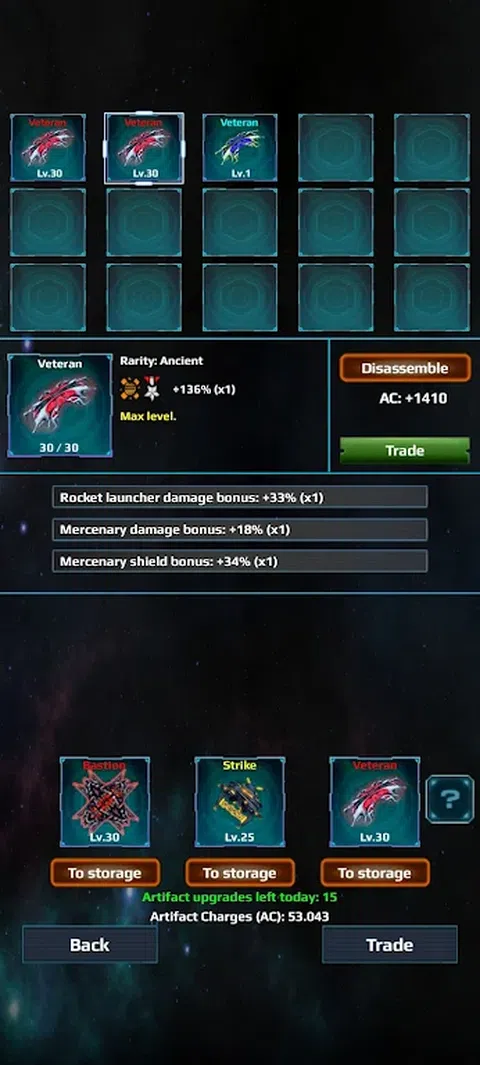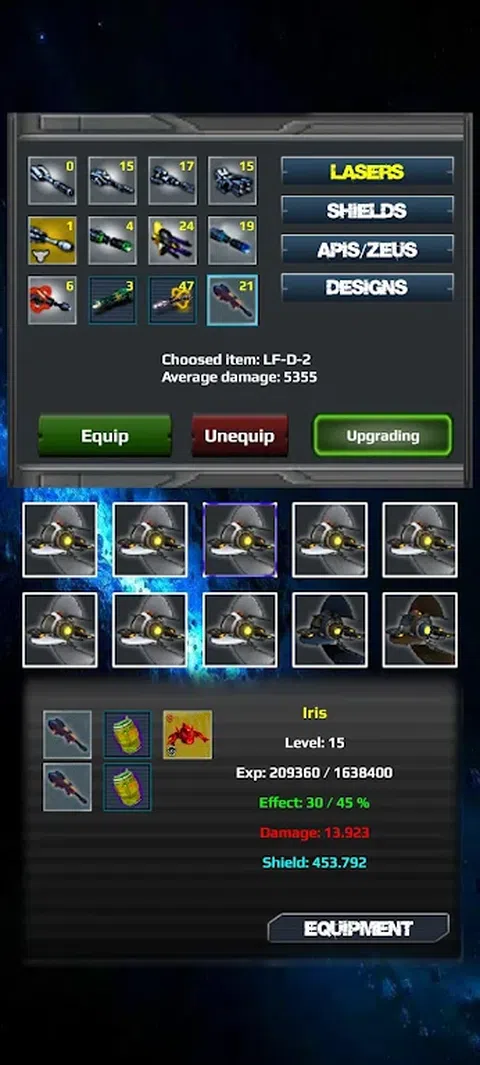 首先,从三个公司中选择一个你要战斗的公司。 将激光器安装在飞船上,开始与外星人的第一次战斗。 挑战数百个不同的任务并获得宝贵的奖励。 与其他玩家竞争,共同消灭外星人。 与其他玩家一起创建或加入战队,并帮助改进战队以获得巨额奖金并解锁新的外星人。 获取各种草稿、资源并制造强大的激光、船只和盾牌。 船舶、枪支、盾牌、发动机和导弹站的许多不同升级。与玩家争夺领导权,获得太空排名并击败最强大的太空外星人