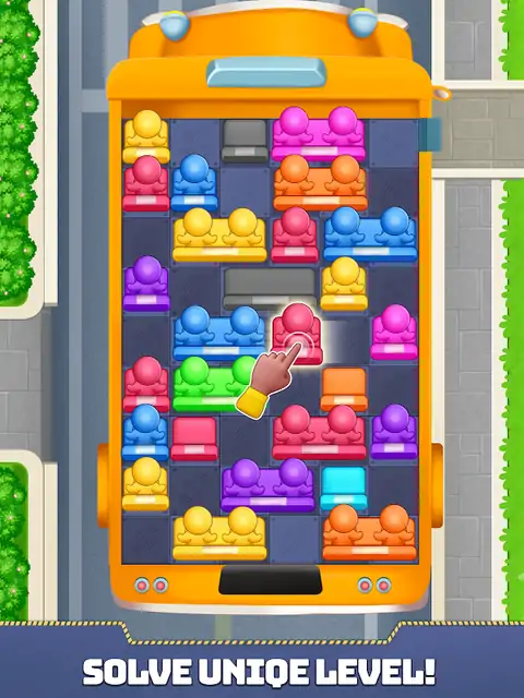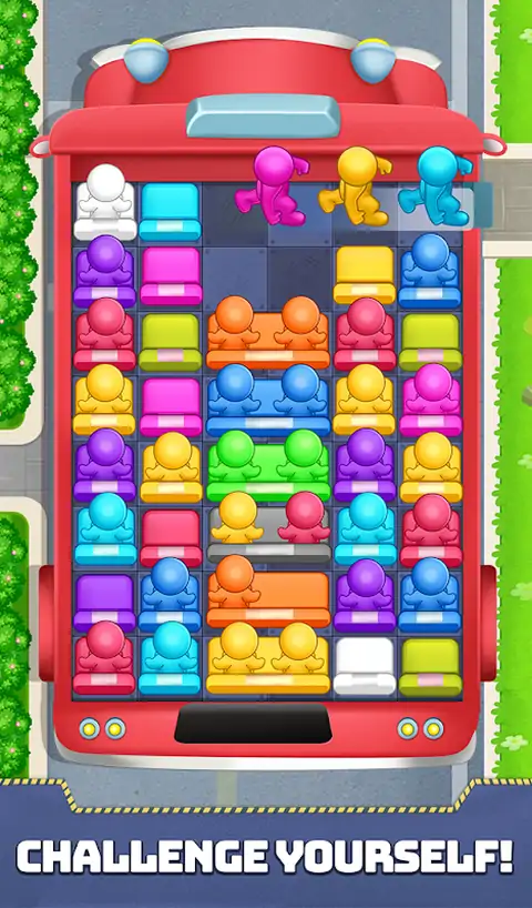 关于游戏 ~*~*~*~*~*~ 令人上瘾的角色移动超休闲益智游戏,乐趣无穷! 移动椅子,为乘客腾出一条路,让他们离开公共汽车。 您有无限的移动次数来逃脱公共汽车上的乘客。 如果卡住了,请使用助推器