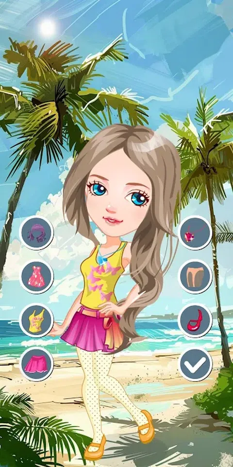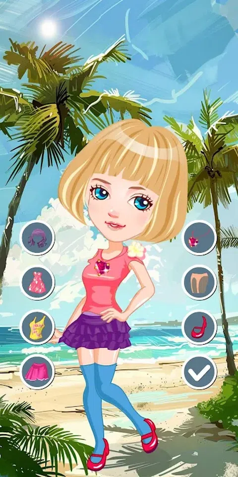 这个美丽的女孩正准备去国外的海滩度假。您所要做的就是选择最漂亮的沙滩衣服来打扮女孩。在美丽的沙滩装中选择最兼容的沙滩装后,您可以在其他选项中选择您的发型、配饰和鞋子。使用左右按钮进行选择时,您可以在中间的女孩上看到您的选择