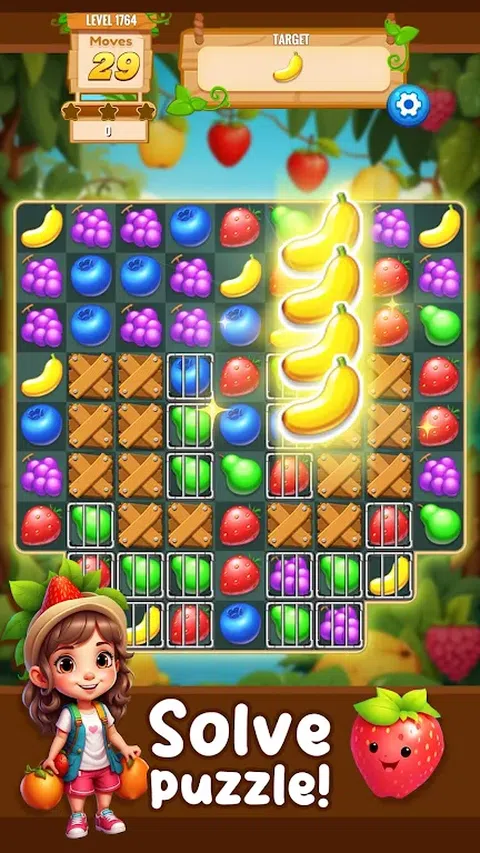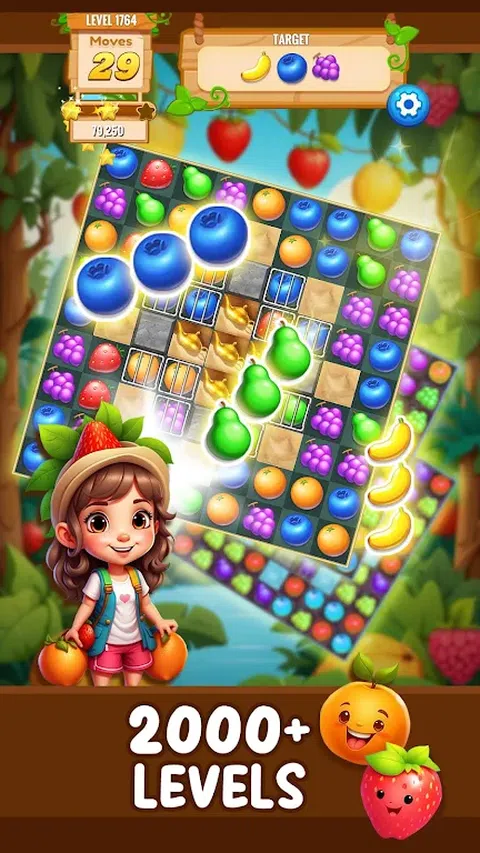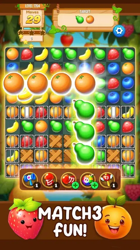 在我们激动人心的三消游戏中,踏上一段愉快的旅程,穿过盛满成熟果实的果园!沉浸在一个充满美味苹果、多汁橙子和饱满浆果的多彩世界中,通过交换、匹配和粉碎来获得胜利。每个级别都有独特的挑战和谜题需要解决,您会发现自己沉迷于创造令人垂涎的组合和激活强大的水果主题强化道具的甜蜜满足感。无论您是寻求轻松消遣的休闲玩家,还是渴望新挑战的经验丰富的玩家,我们的水果主题三消游戏都能为玩家提供无尽的水果乐趣。立即下载并加入水果对战