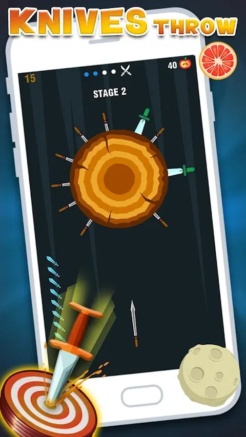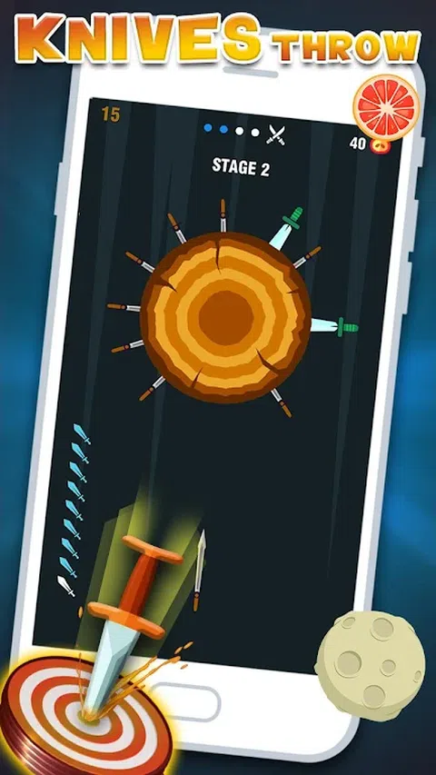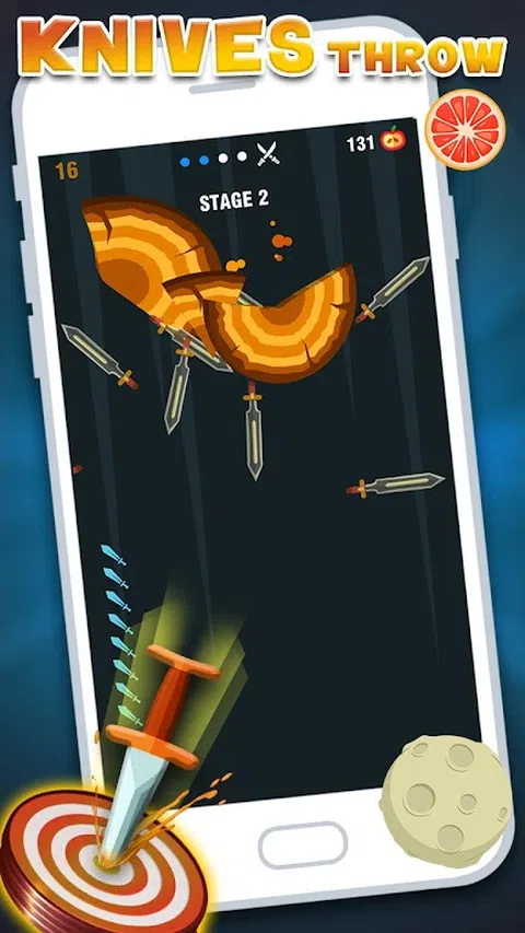 玩这个无尽的刀子翻转游戏。游戏玩法很简单,但是难度会随着新的关卡而增加。您所要做的就是保持动刀,将其扔到旋转破折木的目标中,不断击打直到破木,并像老板一样完成关卡。 将刀放入不同的原木中以打破它们。随着您前进,难度会增加。在下一级别中,旋转的原木边缘将有苹果。您需要用刀将所有苹果切成薄片以解锁等级。 抛刀有很多乐趣,可以避免以前扔的刀和尖刺。击中它们将超过该水平,您必须重新开始。要具体,要点,要有耐心并且要精确,成为投掷刀的主人